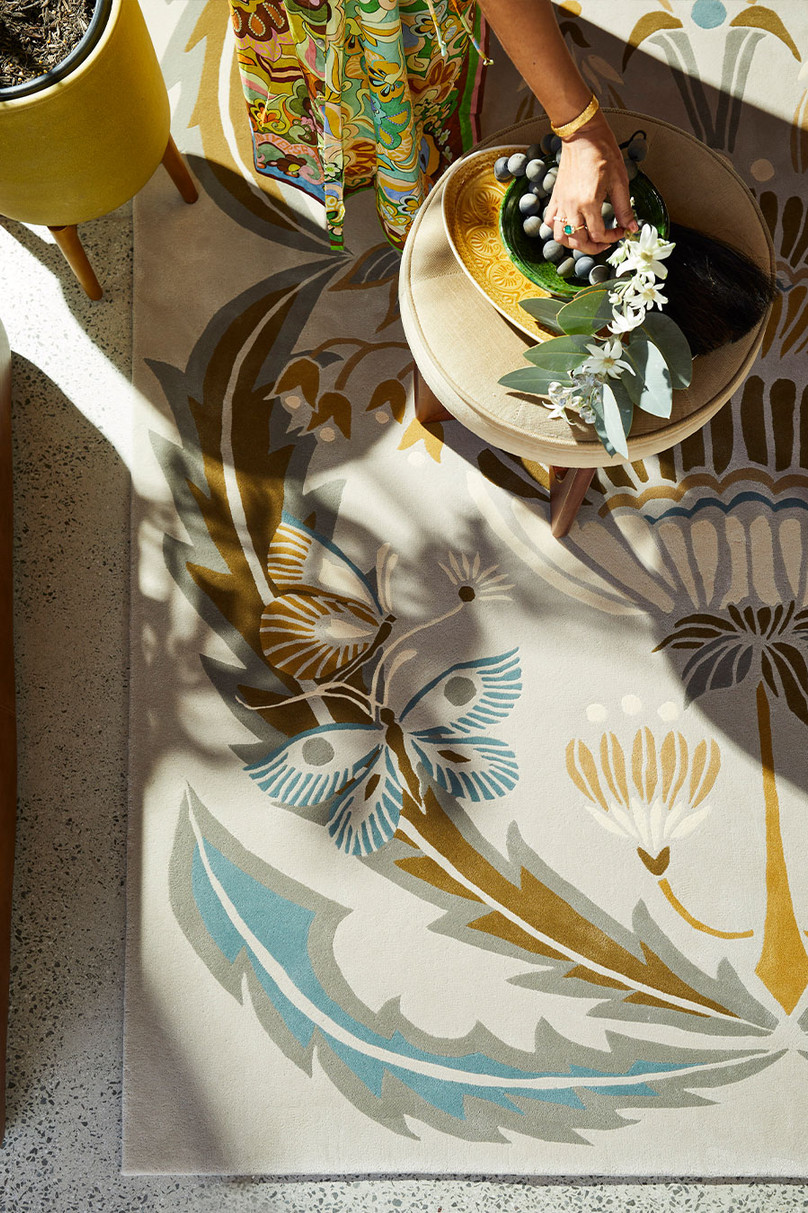 Whispering Bloom” unfolds like petals in motion, blending gentle curves and layered hues in an artistic flow. Hand-tufted in pure New Zealand wool, it brings quiet grace and timeless beauty to any space.